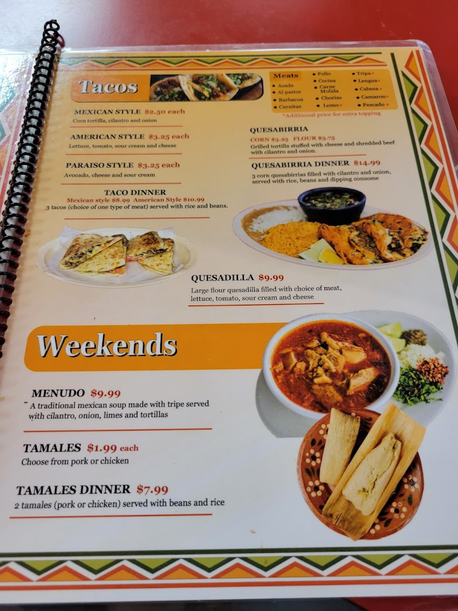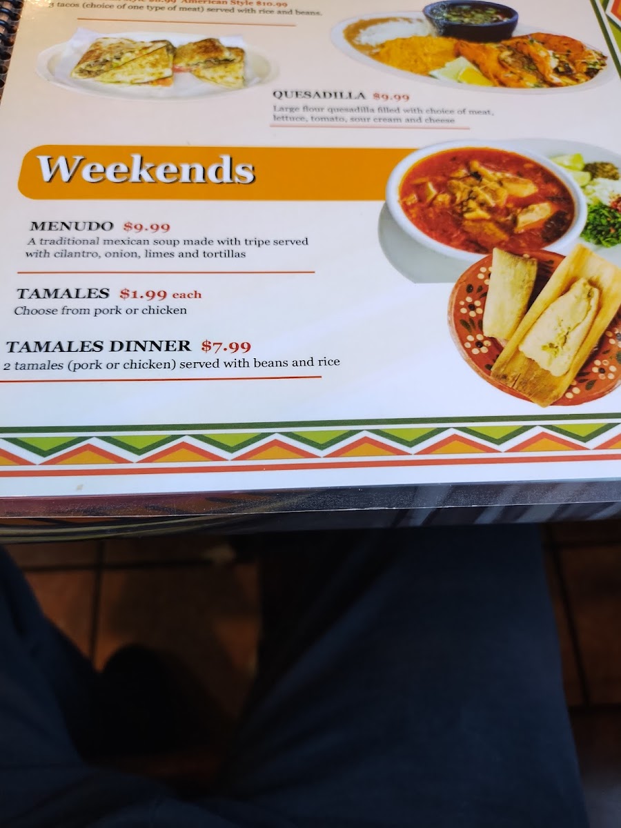 The menu features a delightful variety of quesadillas such as Asada, Pollo, and Barbacoa, each crafting a perfect bite. Don't miss their weekend specialties, including savory Menudo and tempting Tamales—ideal for indulging your taste buds.